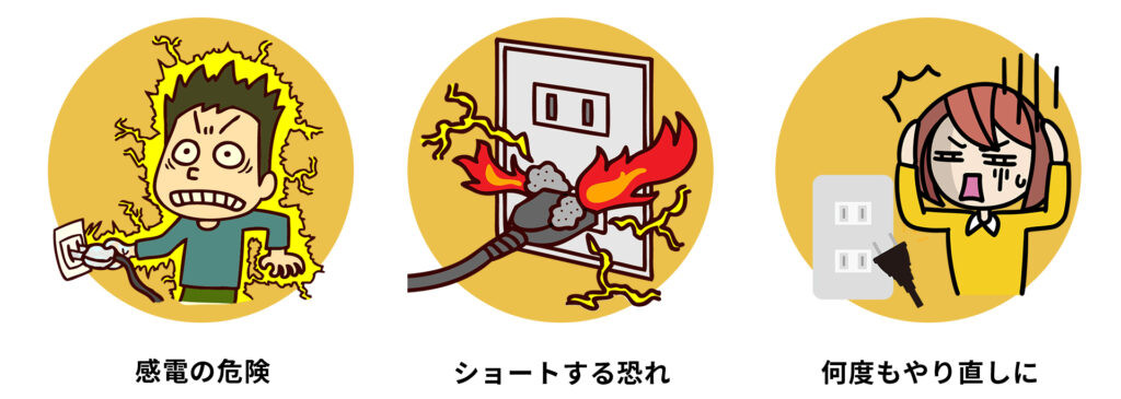 さらにコンセントまわりの作業は感電・発熱・ショートのリスクがあるうえ、工事内容によっては電気工事士の資格が必要なものも多い分野です。無理に触ってしまうと危険なだけでなく、状態を悪化させる原因にもなります。